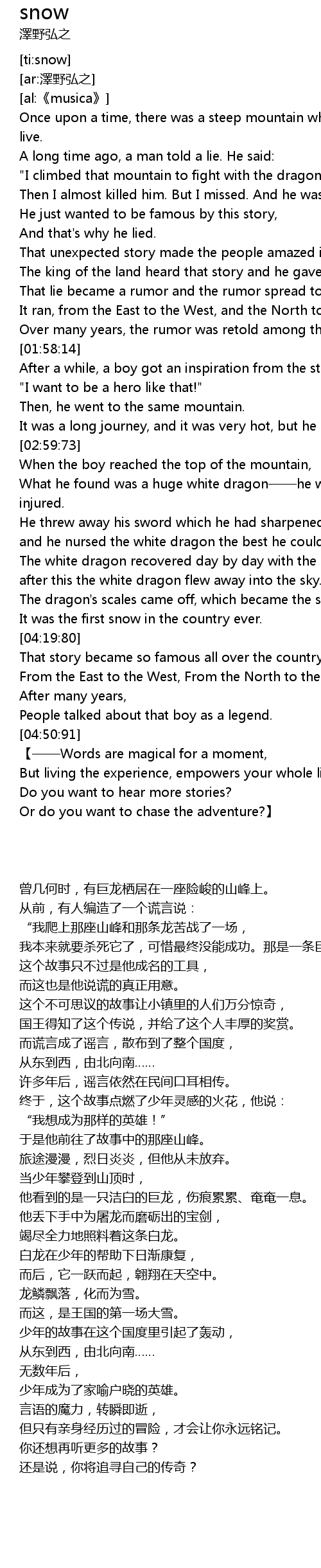| [04:07:48] | The dragon' s scales came off, which became the snow. |