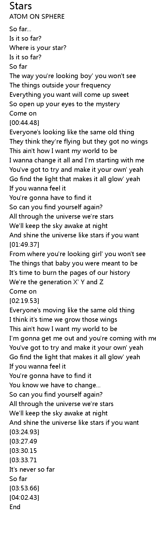 All through the universe we're stars |