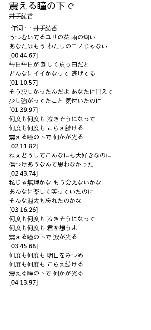 | [03:32.38] | 震える瞳の下で 涙が光る |