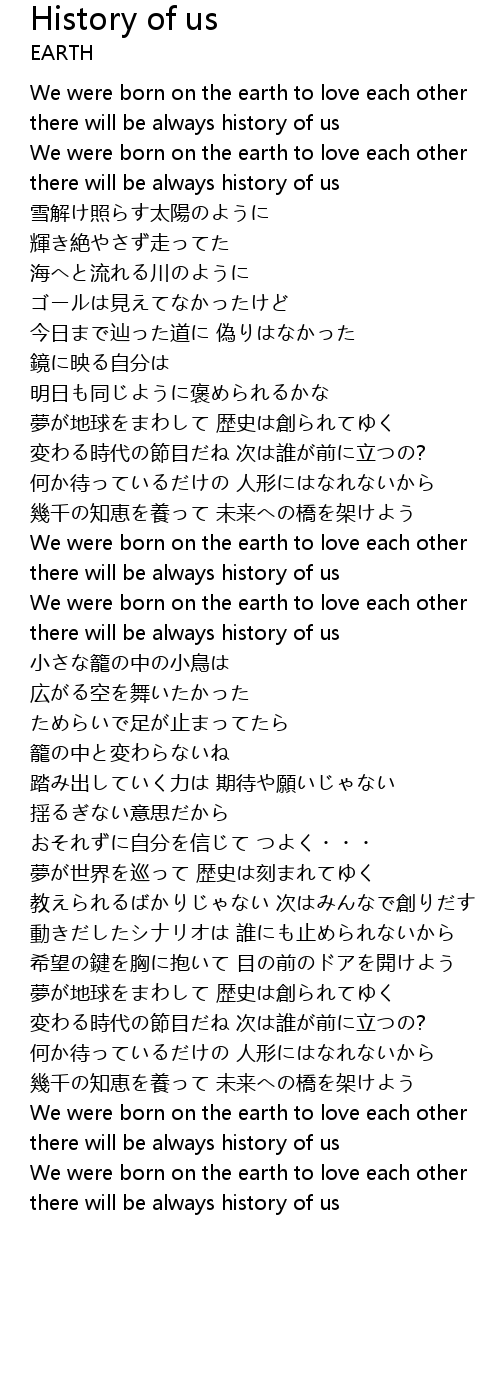 | 夢が地球をまわして 歴史は創られてゆく | |