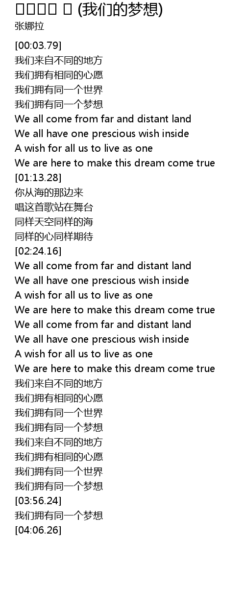 | [03:58.04] | wǒ men yōng yǒu tóng yí gè mèng xiǎng |