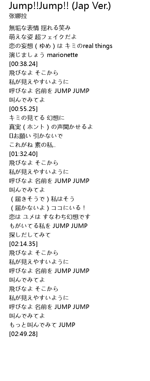 | [02:22.12] | 呼びなよ 名前を JUMP JUMP |