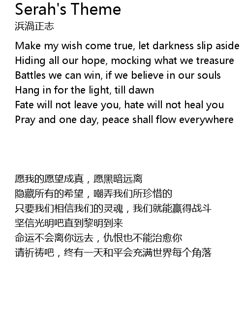 | [00:01.00] | Make my wish come true, let darkness slip aside |