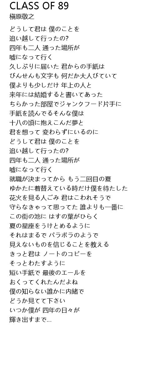 | Song | CLASS OF 89 |