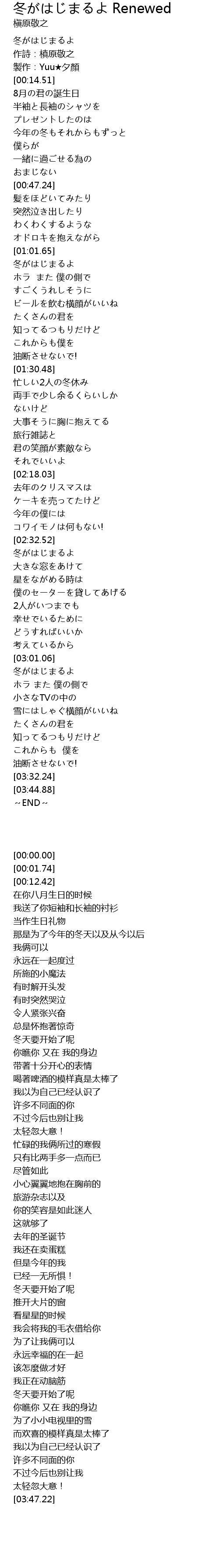| [03:04.26] | 冬がはじまるよ |
