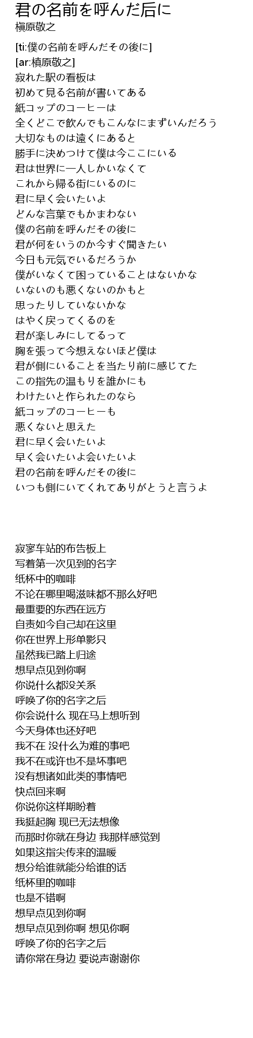 [ti:僕の名前を呼んだその後に] |