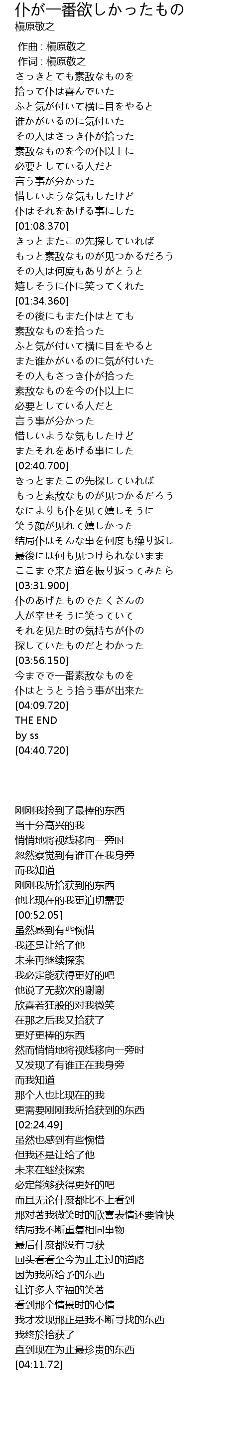 | [04:02.380] | 仆はとうとう拾う事が出来た |