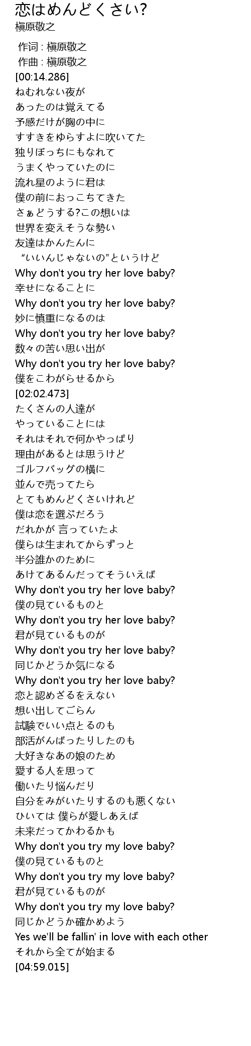 | [04:31.386] | Why don' t you try my love baby? |