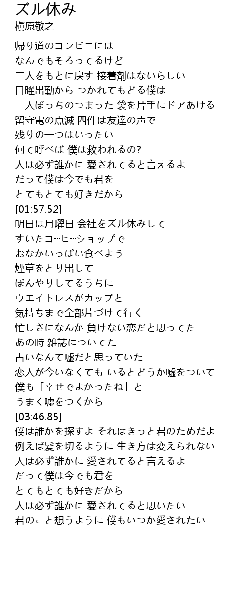 | [01:35.82] | 人は必ず誰かに 愛されてると言えるよ |