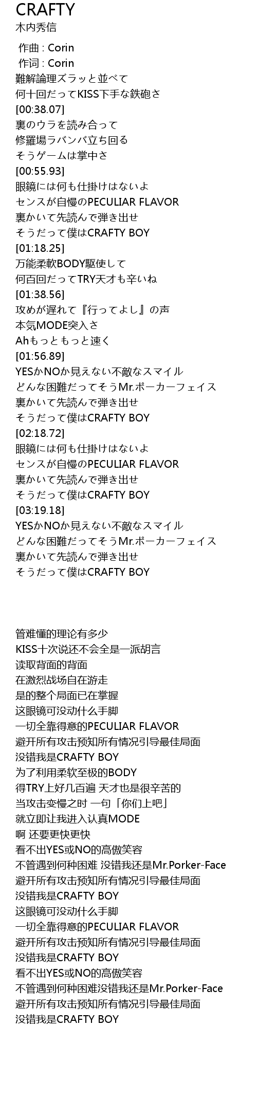 | [03:17.43] | そうだって僕はCRAFTY BOY |