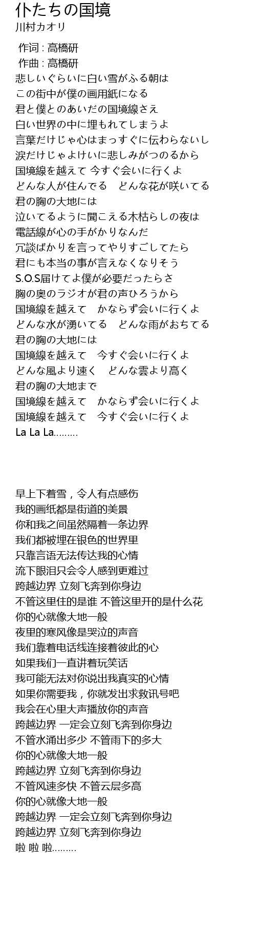 | [03:33.11] | 国境線を越えて かならず会いに行くよ |