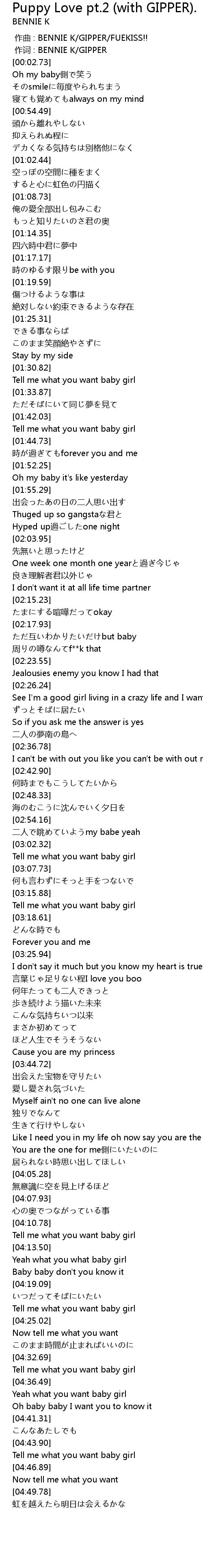 | [00:00.00] | 作曲 : BENNIE K/GIPPER/FUEKISS!! |