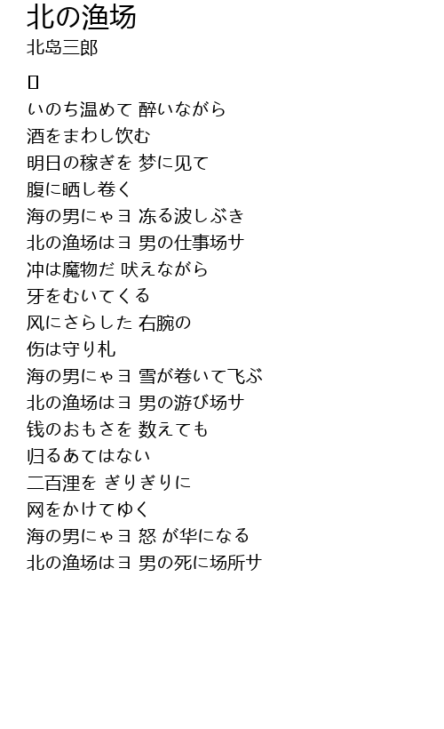 | 北の渔场はヨ 男の死に场所サ |