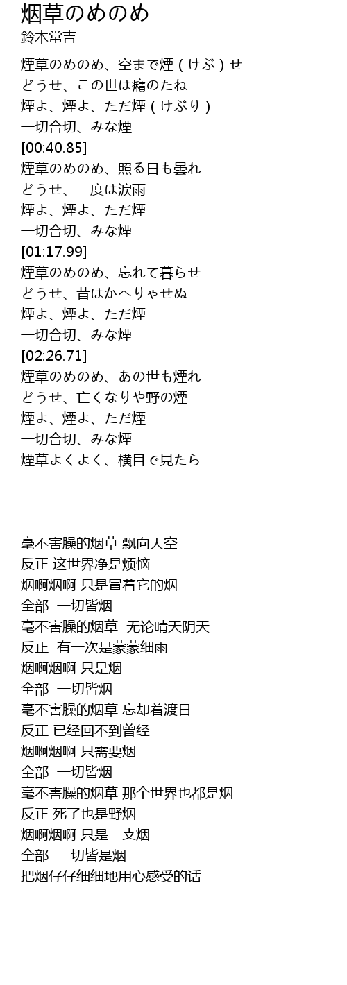 煙草のめのめ、忘れて暮らせ |