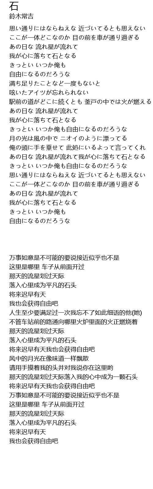 | [02:25.45] | あの日な 流れ星が流れて我が心に落ちて石となる |