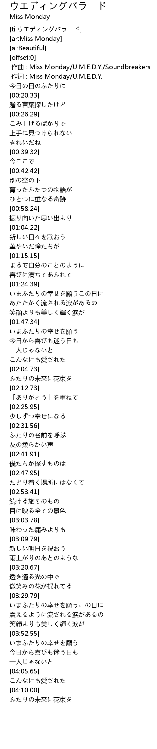 | [03:54.36] | いまふたりの幸せを願う |