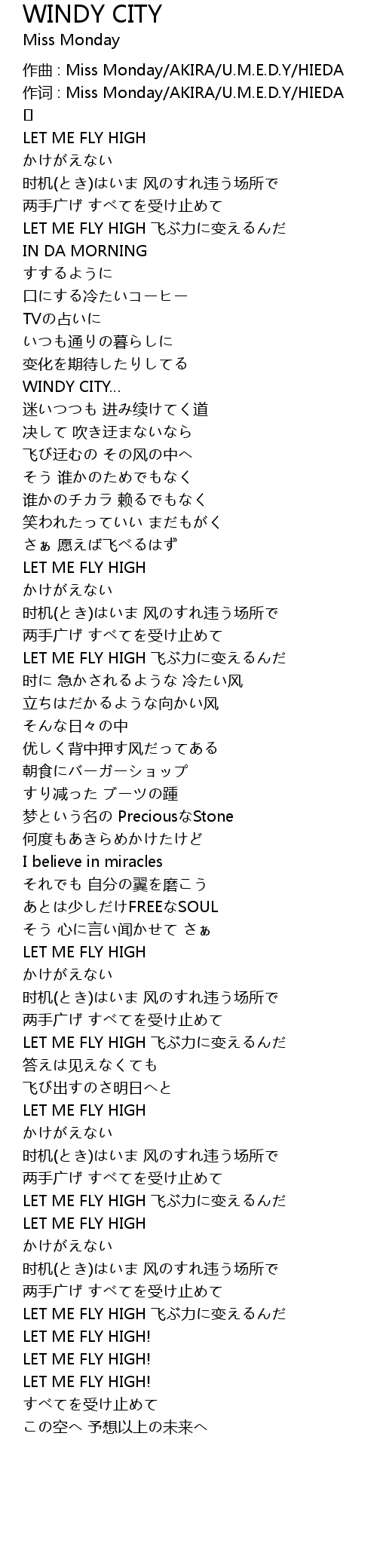 | 作词 : Miss Monday/AKIRA/U.M.E.D.Y/HIEDA | |