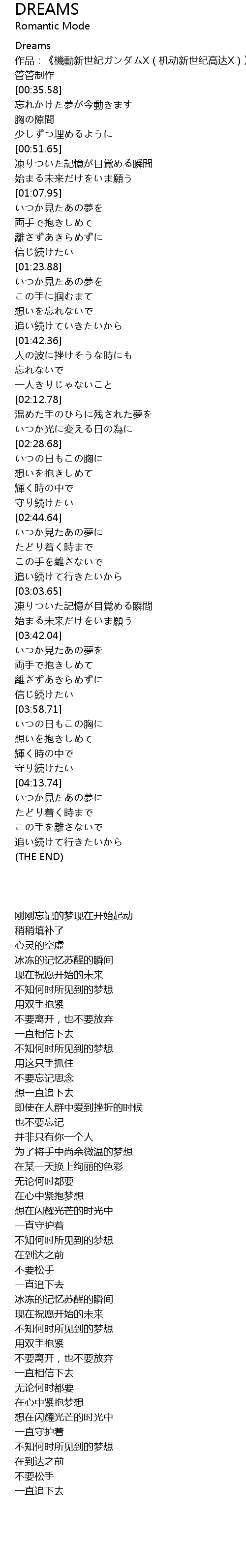 | [00:05.69] | 作品:《機動新世紀ガンダムX(机动新世纪高达X)》 |