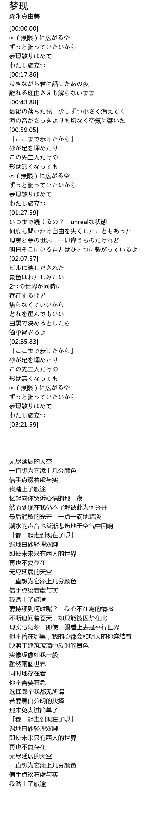| [01:53.48] | 現実と夢の世界 一見違うものだけれど |
