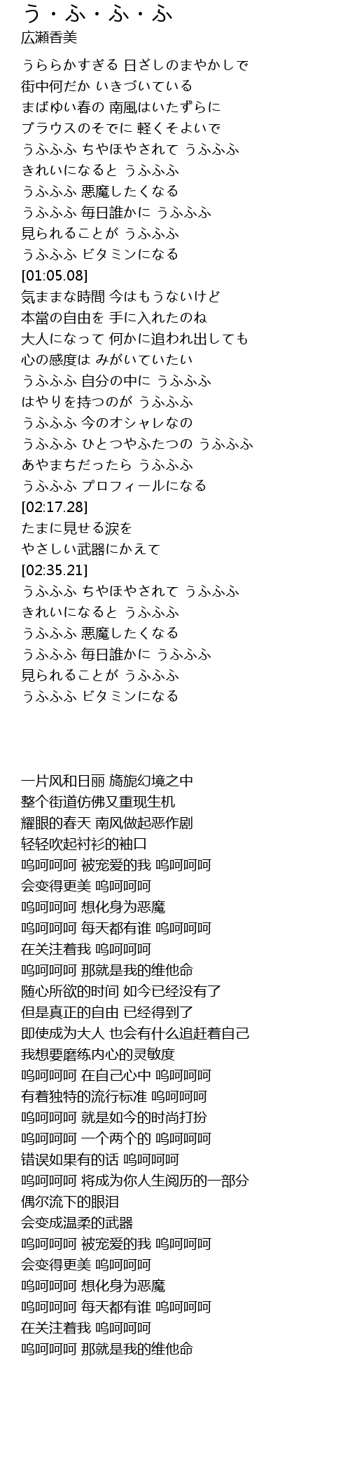 | [00:52.99] | うふふふ 毎日誰かに うふふふ |