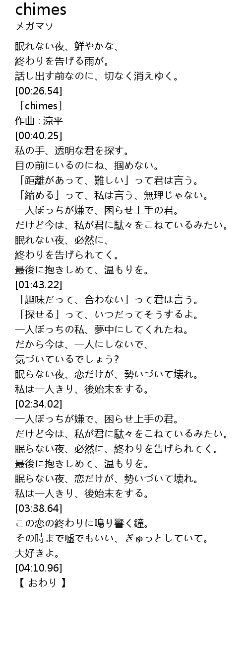 | [00:28.25] | 「chimes」 |