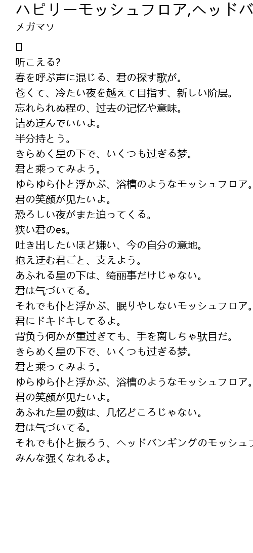 | Song | ハピリーモッシュフロア,ヘッドバンギングソング |