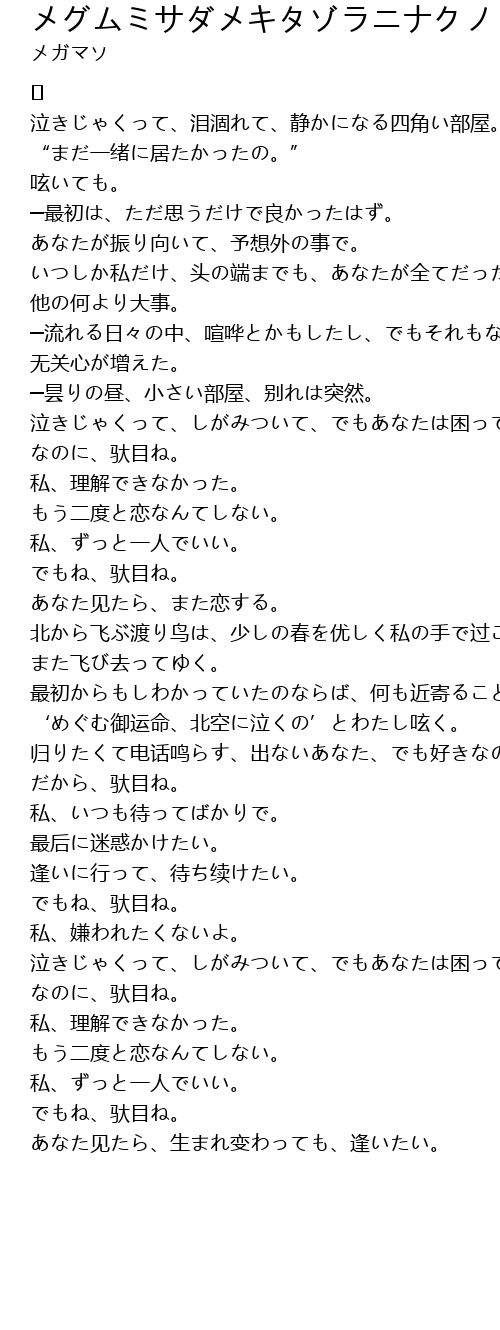 | ‘めぐむ御运命、北空に泣くの’とわたし呟く。 | |