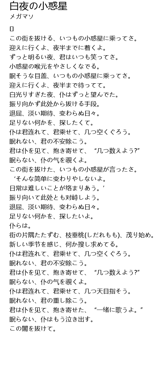 | この街を拔けた、いつもの小惑星が言ったさ。 | |