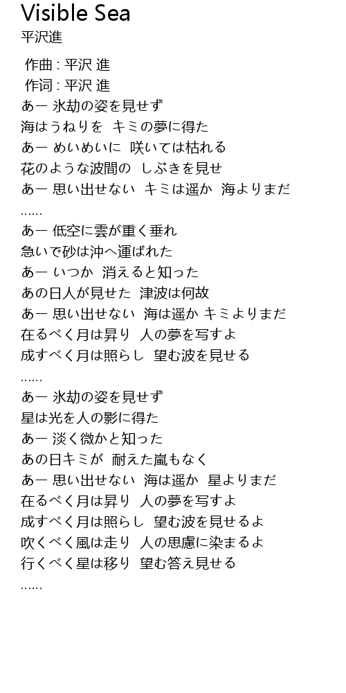 | [02:27.98] | あー 思い出せない 海は遥か キミよりまだ |