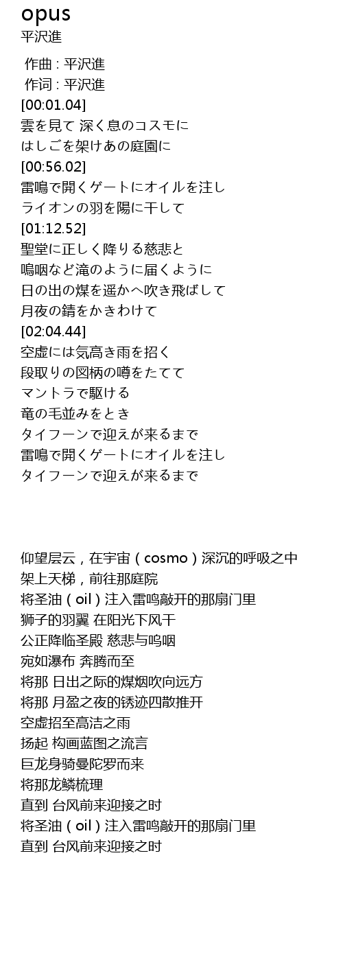 | [00:39.61] | 雲を見て 深く息のコスモに |