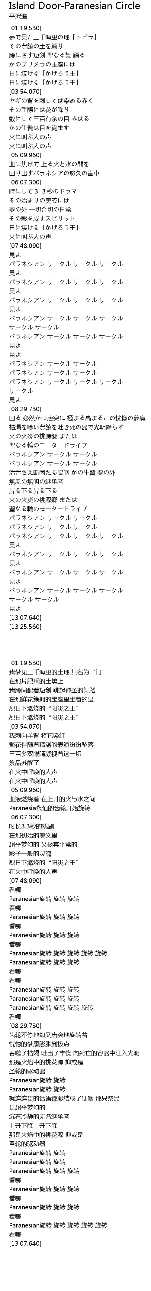 | [08:04.100] | パラネシアン サークル サークル サークル |