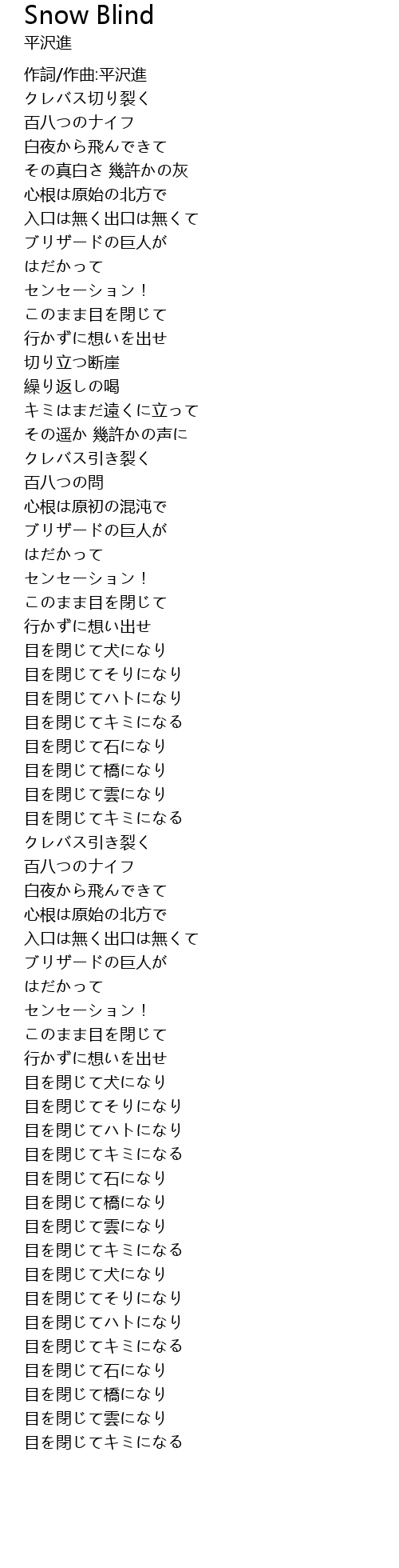 | [01:09.499] | その真白さ 幾許かの灰 |
