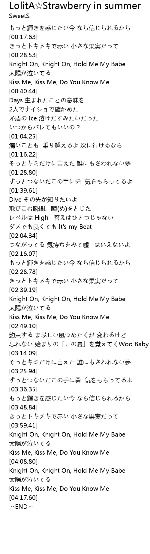 | [04:14.89] | Kiss Me, Kiss Me, Do You Know Me |