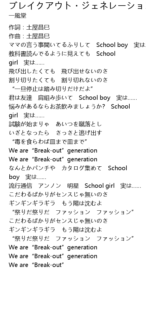 | [02:24.37] | We are" Breakout" generation |
