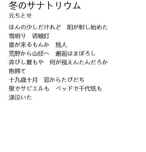 | Song | 冬のサナトリウム |