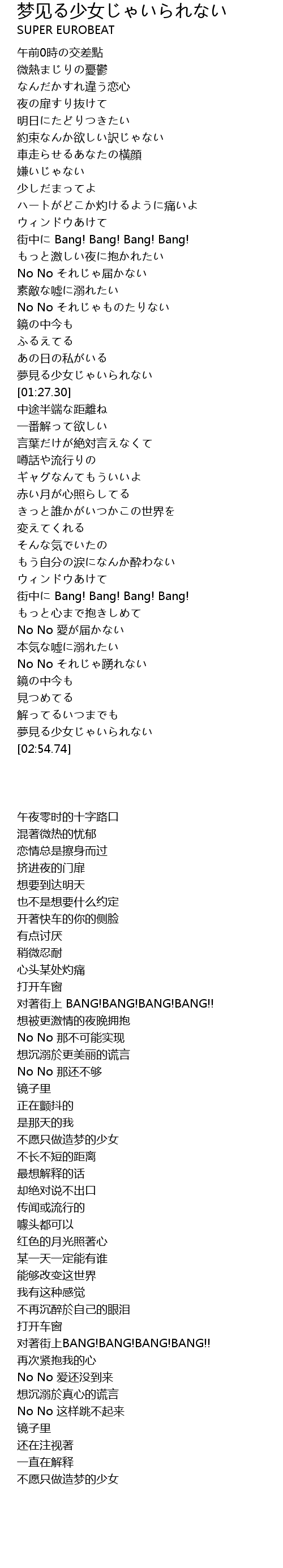 | [02:26.72] | 街中に Bang! Bang! Bang! Bang! |