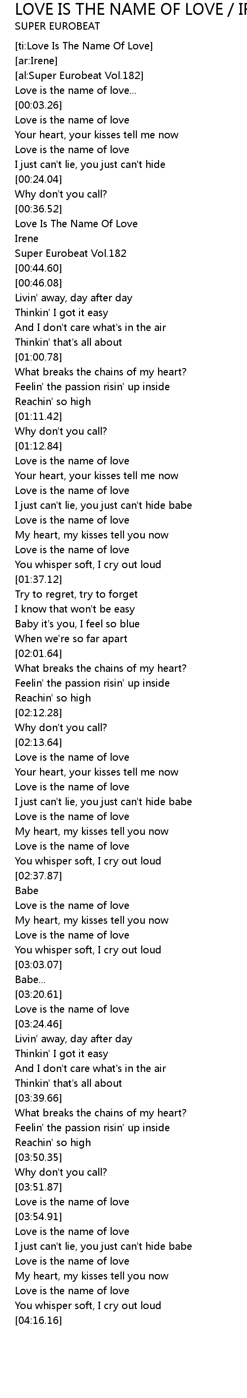 [ti:Love Is The Name Of Love] |