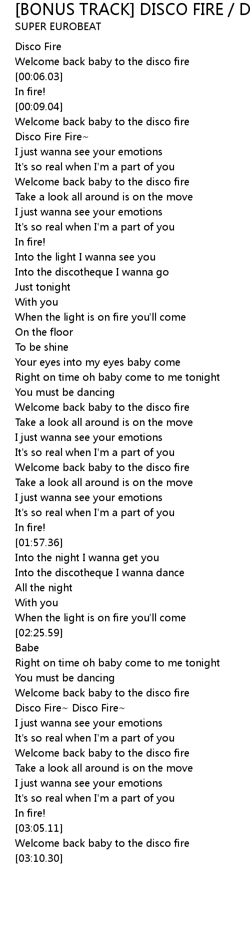 Welcome back baby to the disco fire |