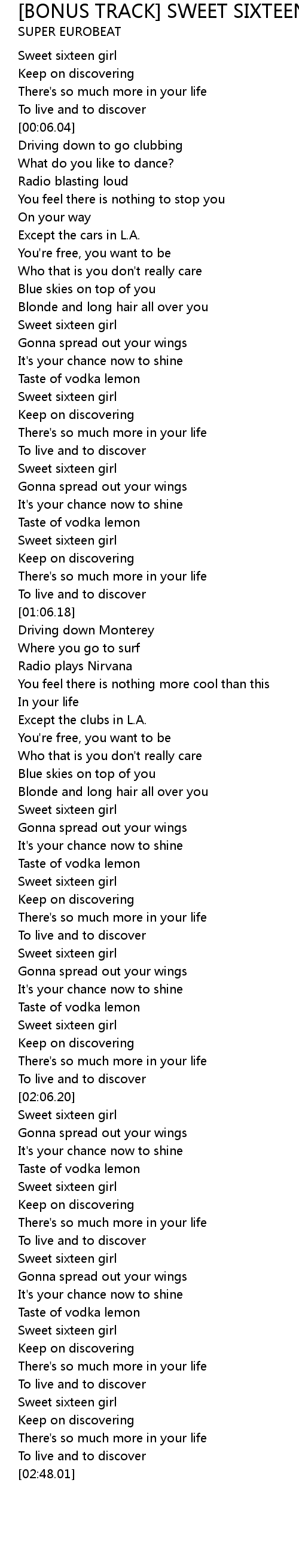 [00:47.99] Sweet sixteen girl