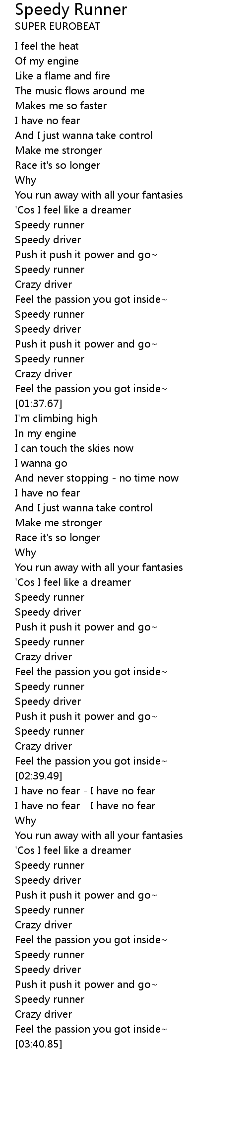 Speedy Runner Lyrics