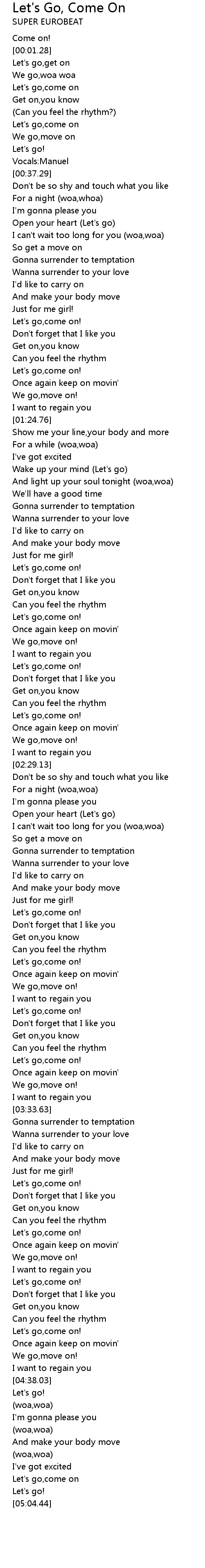 Let's Go, Come On Lyrics