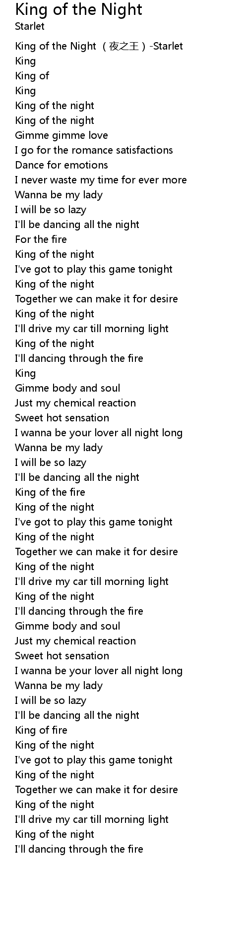 | [00:11.347] | King of the night |