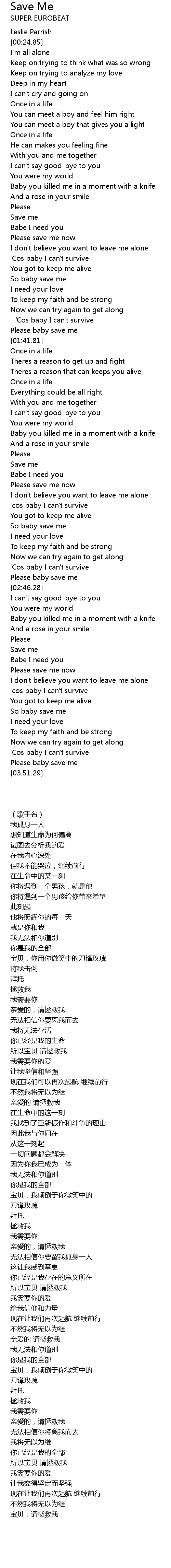 | [03:20.75] | Baby you killed me in a moment with a knife |