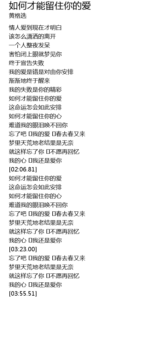| [02:30.55] | ru he cai neng liu zhu ni de ai |