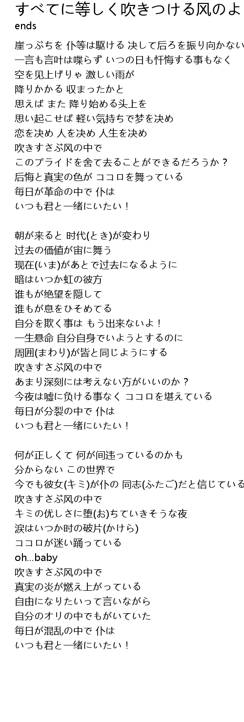 | Song | すべてに等しく吹きつける风のように |