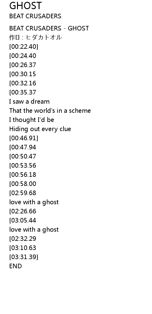 | [00:00.00] | BEAT CRUSADERS - GHOST |