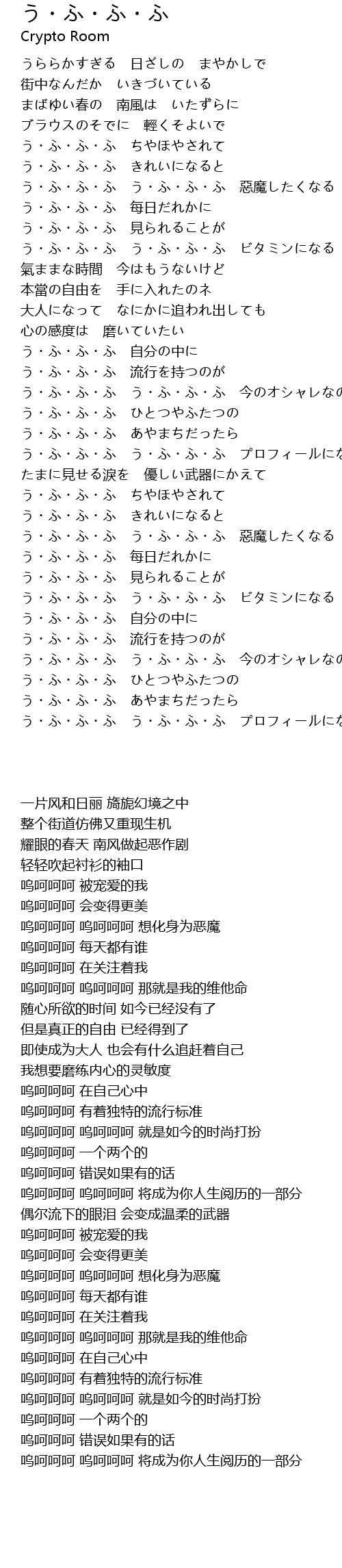 | [00:54.72] | う・ふ・ふ・ふ う・ふ・ふ・ふ 惡魔したくなる |