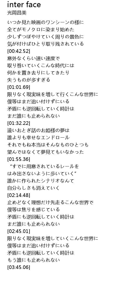 | [01:43.64] | 誰よりも幸せなエンドロール |