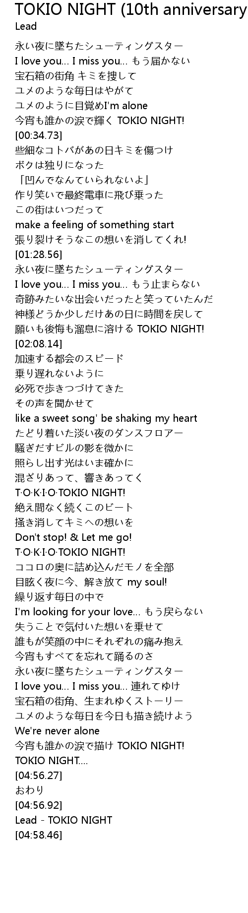 | [04:57.20] | Lead - TOKIO NIGHT |