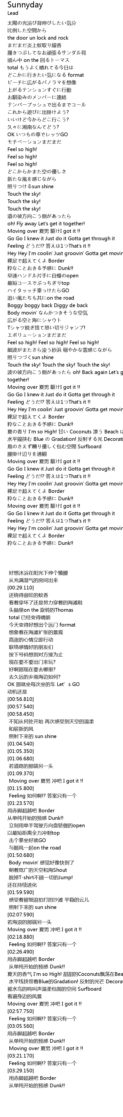 | [02:38.080] | 夏の香り I'm so High! 甘い Coconuts 漂う Beach は爽快 |